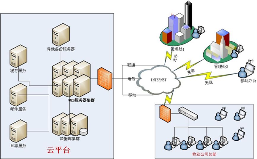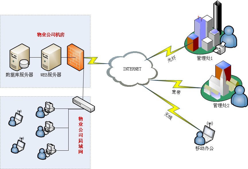 1、总部服务器一台:安装物业管理软件