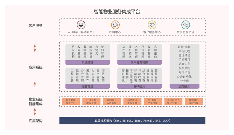 网络化的物业管理系统,能够实现系统内部信息及数据资源的共享,以加强企业内部的信息沟通,构建企业扁平化管理架构。集成