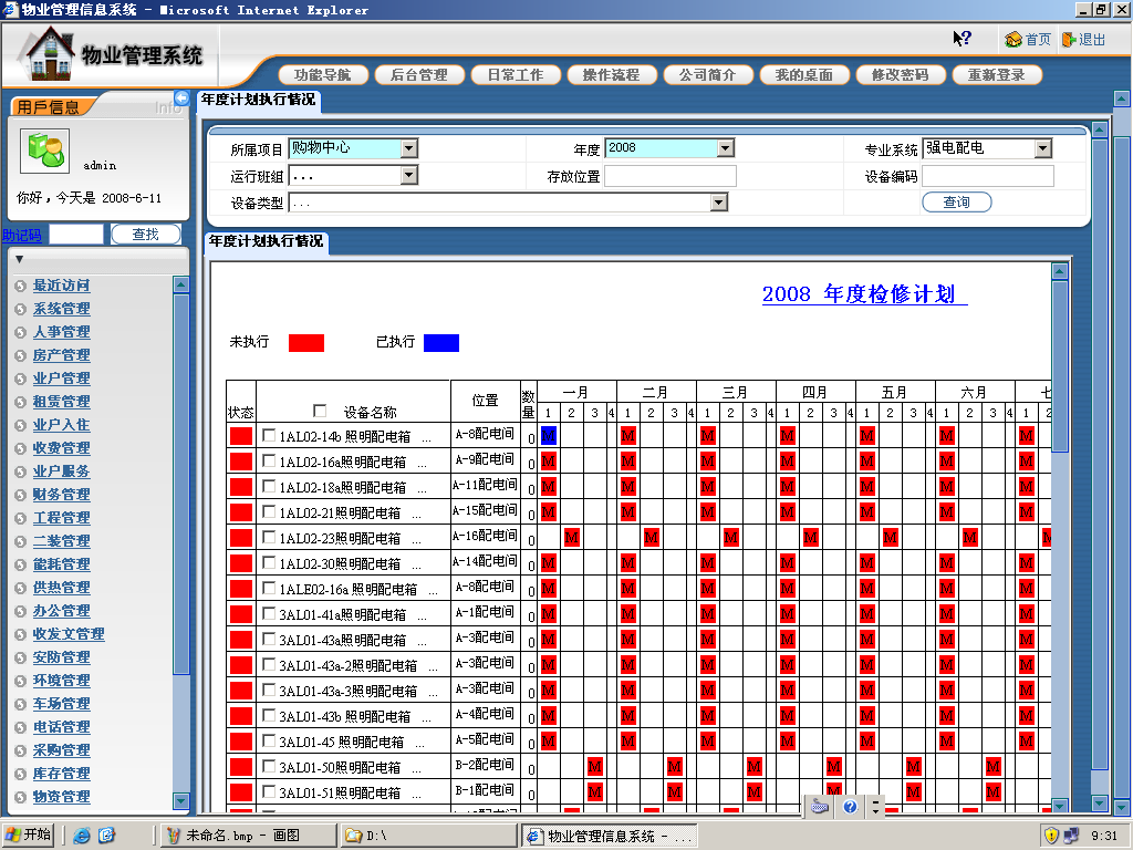公共区域仪表的定义、维护,定期抄表,对抄表结果进行查询统计,对不同年度、不同项目之间的能耗情况进行对比