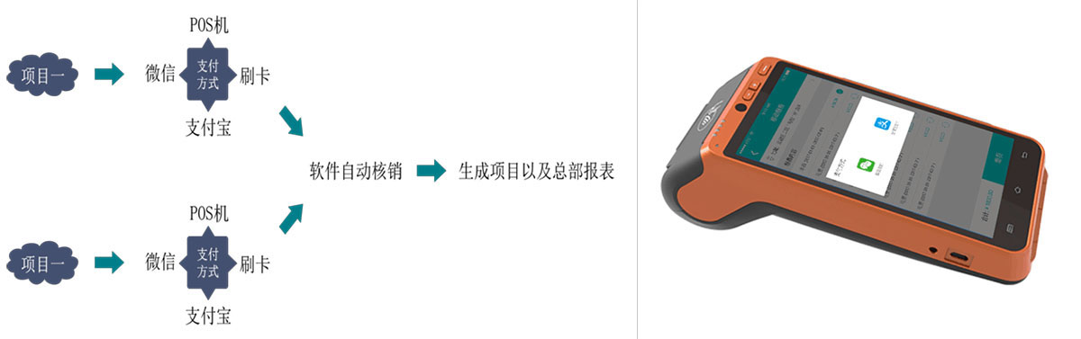 应用场景:上门催缴或业主来缴费大厅缴费,不需现金,避免现金交易,物业人员根据业主信息调取业主应收账单信息,选择缴费项目,此时可以选择多种支付方式,刷银行卡或者微信、支付宝扫码付。如果刷银行卡需要配备智能POS机,如果二维码扫码付智能手机即可,物业人员手持POS机扫描业主的微信或支付宝的付款二维码,可以使用微信、支付宝进行缴费。智能手机或POS机需要安装我公司乐帮手APP。为了增加业主信任感、统一性形象,建议可统一使用POS机,这样既支持二维码也支持刷卡,并可可以打印收据。